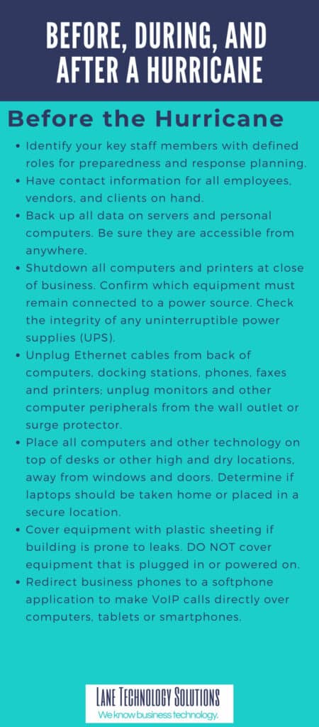 Read a detailed list below to learn how to plan to keep your business and data safe before, during, and after a hurricane strikes.
