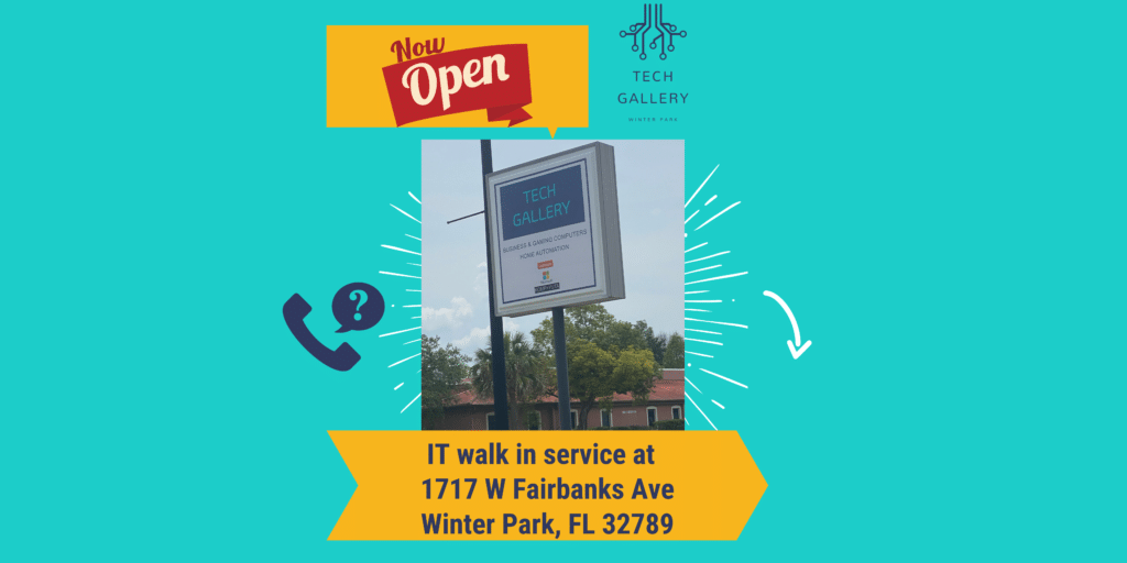 Things are really moving along with our new location, Tech Gallery. Signage is up, the store has a few display desktops available for guests to peruse, and we have folks walking in the door to drop off their devices for repair services. We are still working on getting in more